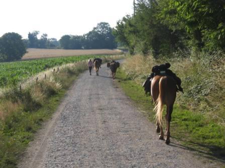 At Laniscat, courtesy of the ‘Mairie’, we stayed on the village sports ground. With the horses in a big paddock next to the football pitch, we showered in the Away Team’s dressing room. Can you imagine this happening in Britain, a community providing accommodation for travelling horses?