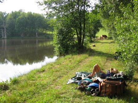 The contrast with the next place couldn’t have been greater. At a ‘camping à la ferme’ near Moutier d’Ahun the horses were given a field full of good grass and a mineral block – stock farmers understand what animals need. We bought milk, cheese, salad, fruit, vegetables and apple juice – all produced on the farm and all delicious. We took the opportunity to take another rest day while things were going in our favour.