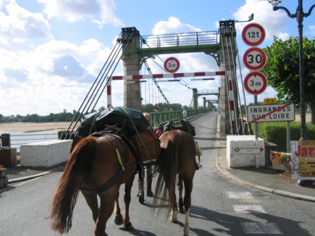 Breathing a large sigh of relief, we arrived at the campsite only to discover that ‘just next door’ meant two miles away…back on the other side of the bridge. Oh how we laughed! But not very much. A temporary sense of humour failure in fact. In the event, the return crossing wasn’t too bad and we arrived at the farm to hear that “of course nobody crosses that bridge with horses anymore”.