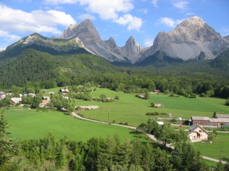 The next day took us over the Col du Noyes (one of the ‘mythical’ cols of the Tour de France apparently) and into the Champsau area. Clouds cleared as we descended hairpin bends and we were rewarded with a fantastic view of the Drac Valley and the peaks of the Massif des Ecrins.